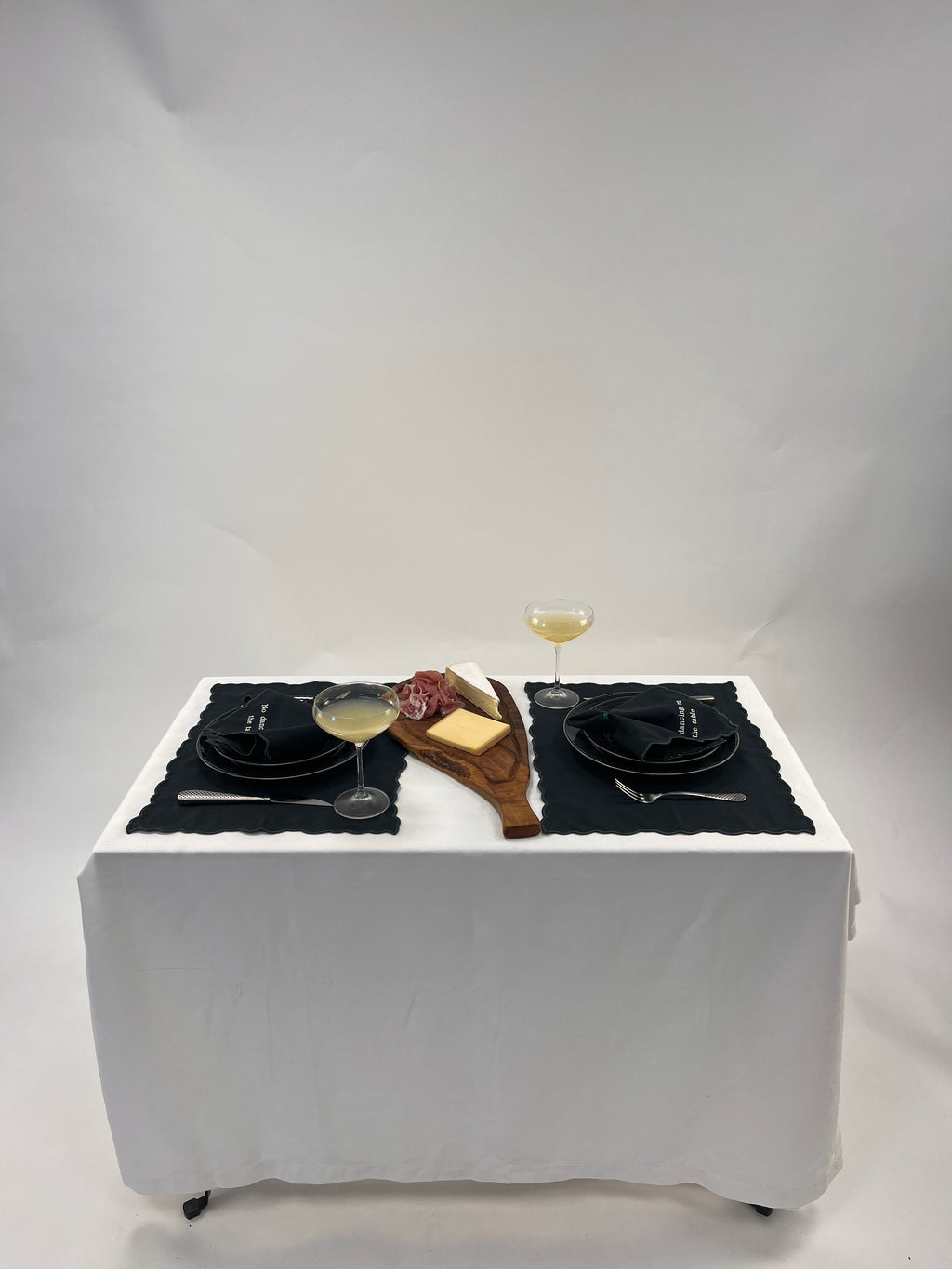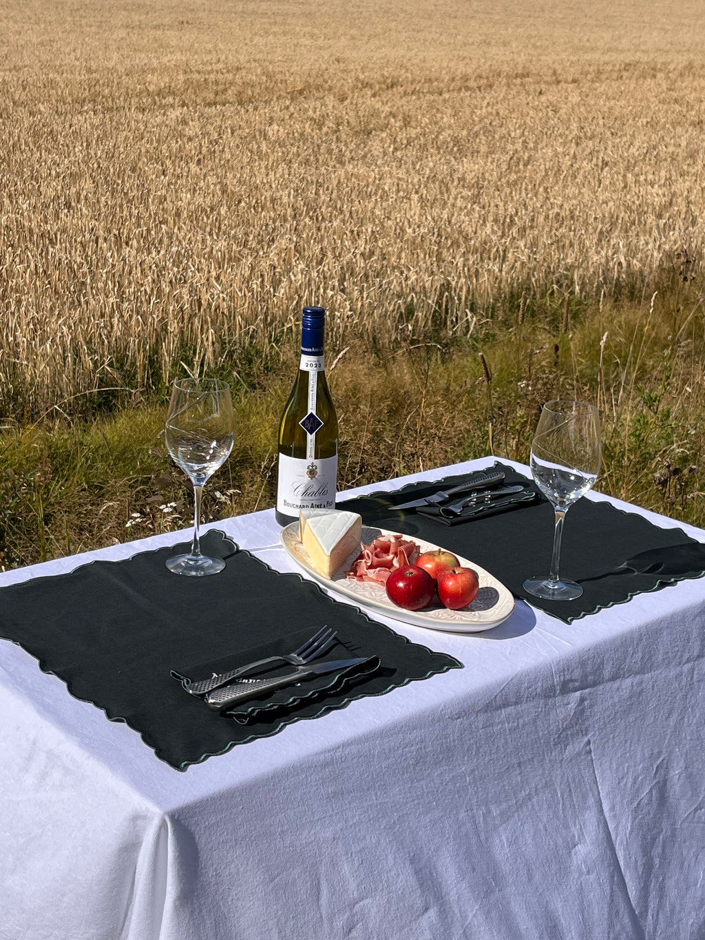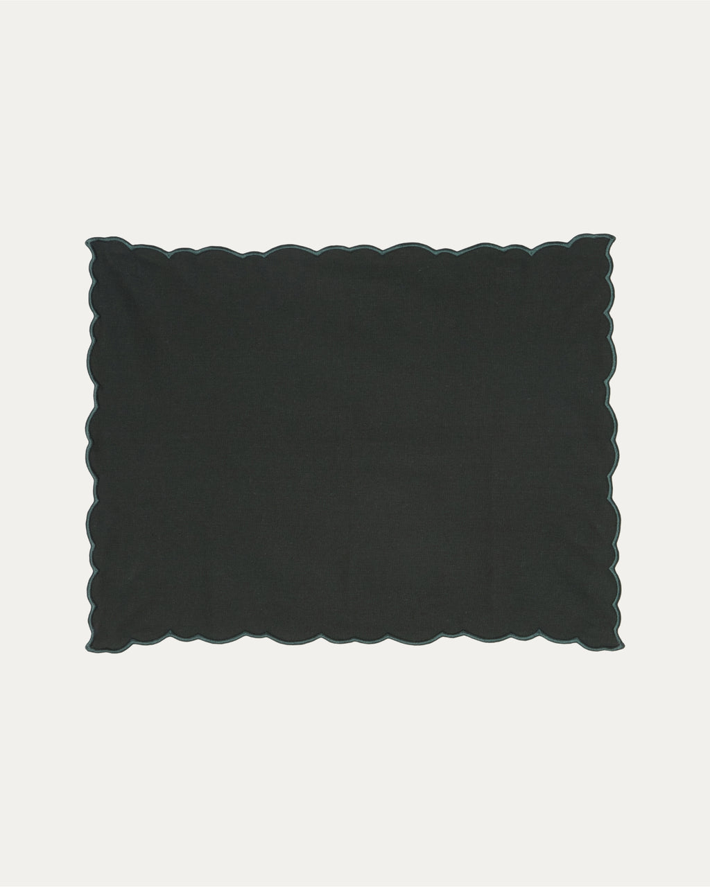 Featuring a stylish dark green color with an embroidered edge, this placemat adds an elegant and creative touch to your next dinner party.