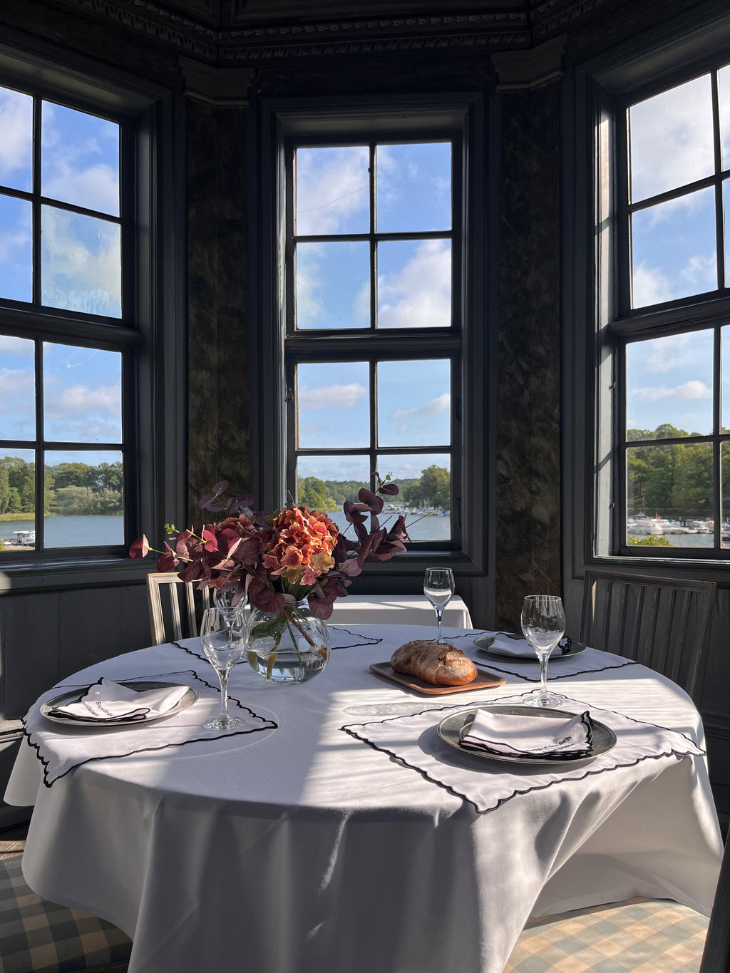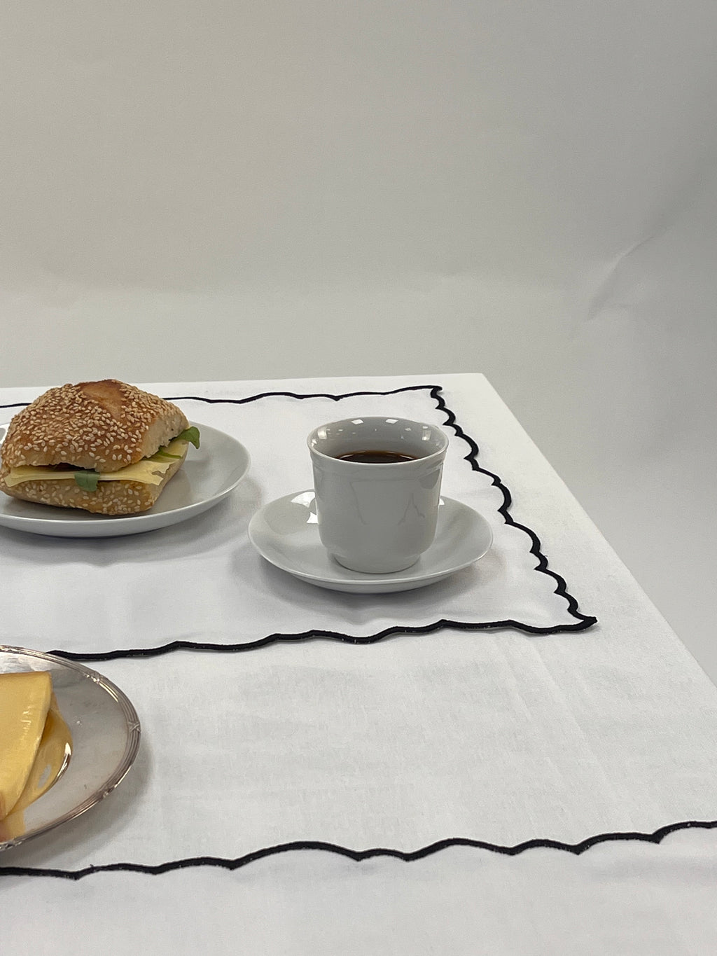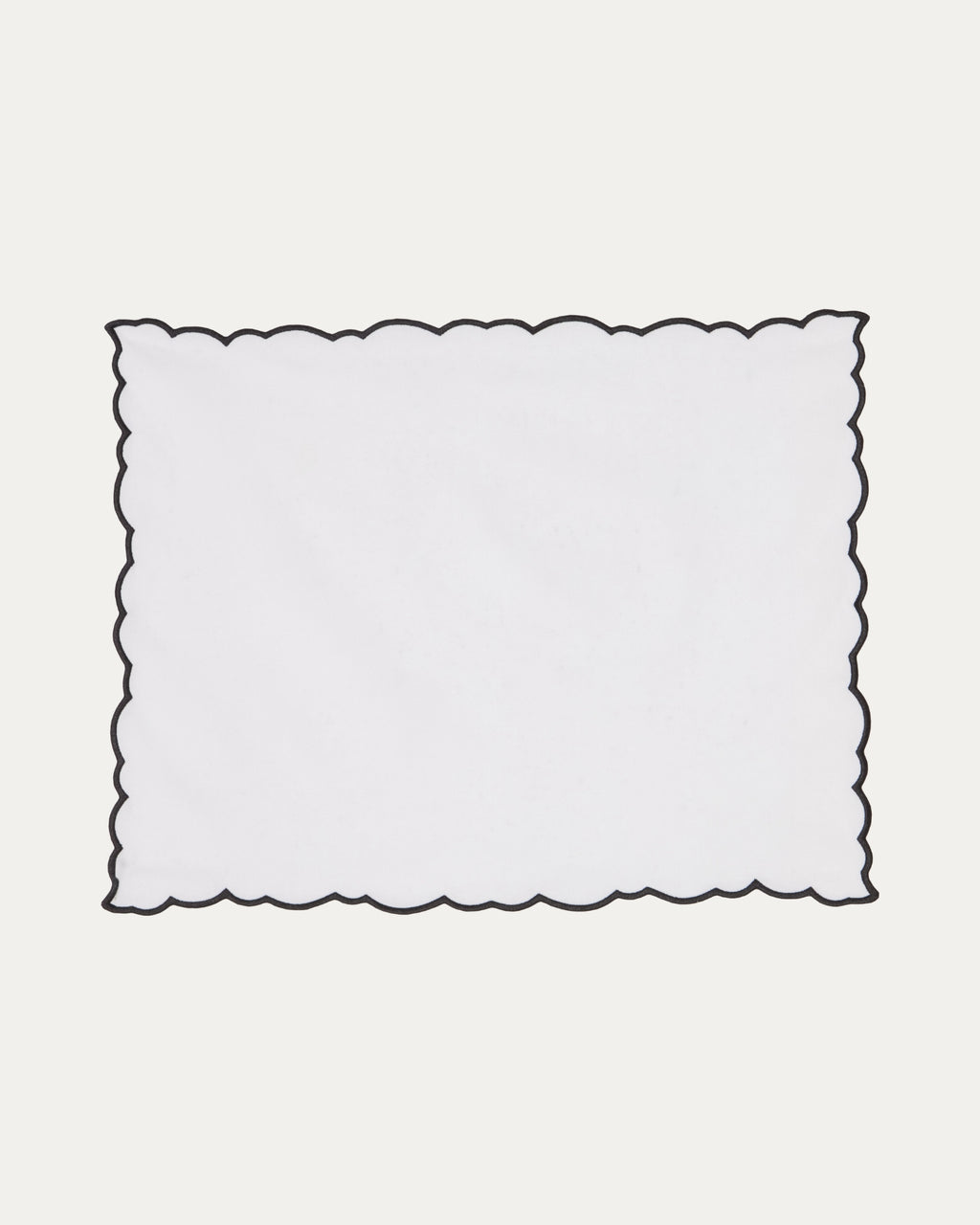 Featuring a crisp white color with a black embroidered edge, this placemat adds an elegant and creative touch to your next dinner party.